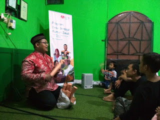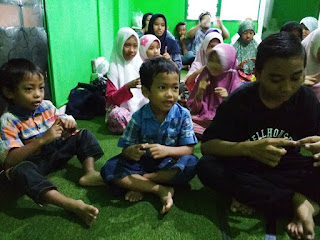 Minggu sore (26/11), hujan deras mengguyur kelurahan Patehan. Dingin pun menyelimuti. Tinggal di rumah, santai kumpul dengan keluarga atau mungkin tiduran di dalam kamar, menjadi pilihan utama banyak orang. Tapi tidak dengan anak-anak RW 5 Patehan Tengah. Mereka berduyun-duyun menembus derasnya hujan menuju Musholla An Nur mengikuti Dongeng Anak bersama Ustadz Aris Pahlawan Bertopeng.